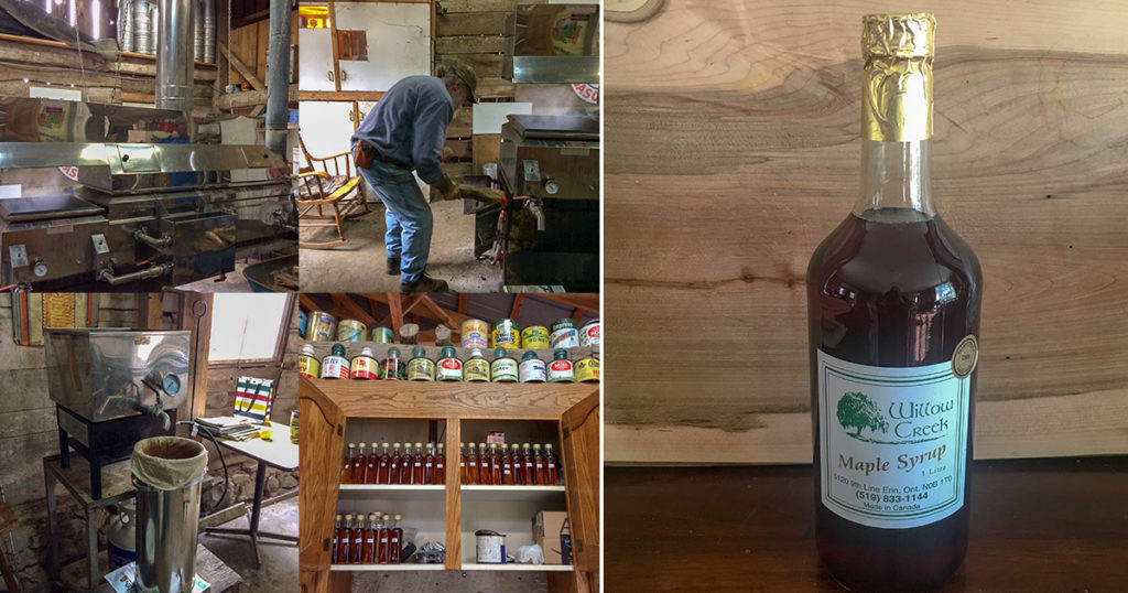 After some brief chats with Jay Mowat we decided to head over to his farm to pick up a rain barrel and learn a little more about his Maple Syrup Co-op operation. What a great decision! Not only did we get to spend time with a local celebrity (more on his background in this article) but we also learned a ton about the painstaking process behind one of Canada’s claims to fame. It is far more involved than simply collecting and boiling sap!